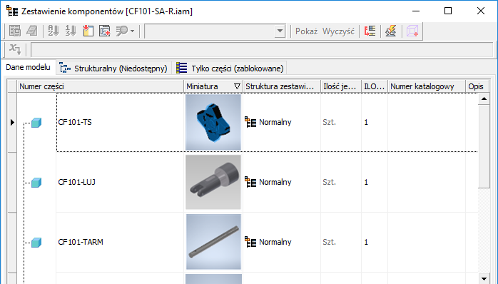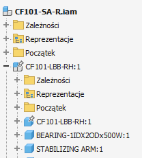 W przeglądarce zostanie wyświetlone odniesienie do nowszego pliku. Węzły komponentu są inne niż natywnych komponentów programu Inventor.