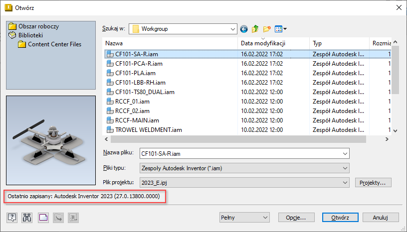 Odszukaj i wybierz nowszy plik zespołu (.iam), aby go otworzyć.