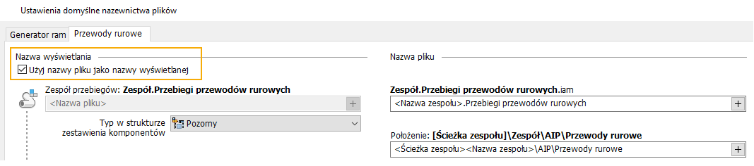 Określ, w jaki sposób sekcja Przewody rurowe ma tworzyć pliki i foldery.