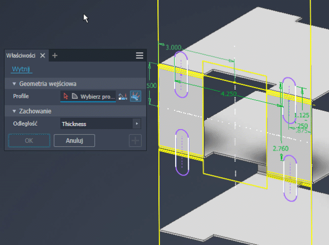Zastosuj, jeśli potrzebne są dodatkowe elementy wycięcia i profile są gotowe.