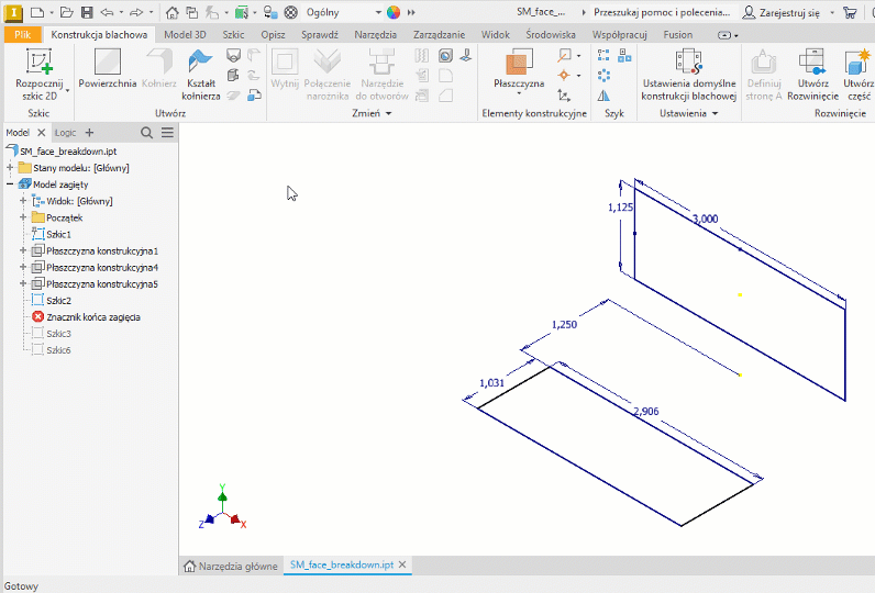 Na wstążce kliknij kartę Konstrukcja blachowa