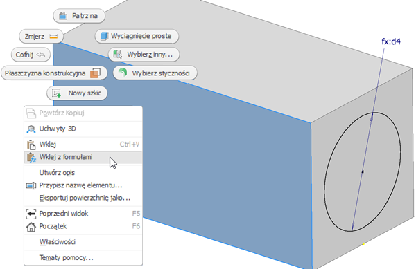 Szkic można kopiować i wklejać z jednej powierzchni do drugiej oraz z jednego komponentu do innego. W zależności od wybranego polecenia wklej parametry użytkownika zostaną skopiowane i wklejone.