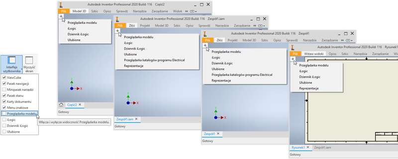 Można również zmienić widoczność przeglądarki modelu poprzez przejście do karty Widok
