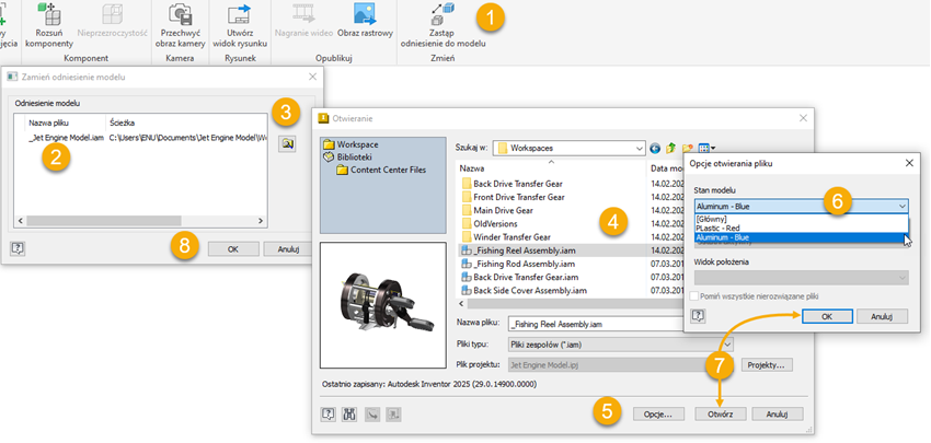 Aby określić reprezentacje modelu, w oknie dialogowym Wybierz zespół kliknij przycisk Opcje. Następnie w oknie dialogowym Opcje otwierania pliku: