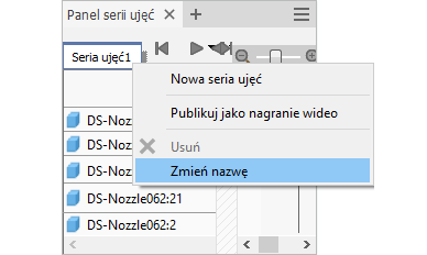 Prezentacje: podczas pracy z prezentacją można zmienić nazwę serii ujęć podczas ich tworzenia lub później, jeśli zostanie wybrana.