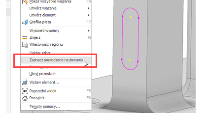 Geometria rzutowana: teraz można wybrać w szkicu całą geometrię rzutowaną bez odniesień (lub uszkodzoną), aby można ją było szybko usunąć lub sprawdzić w celu naprawy.