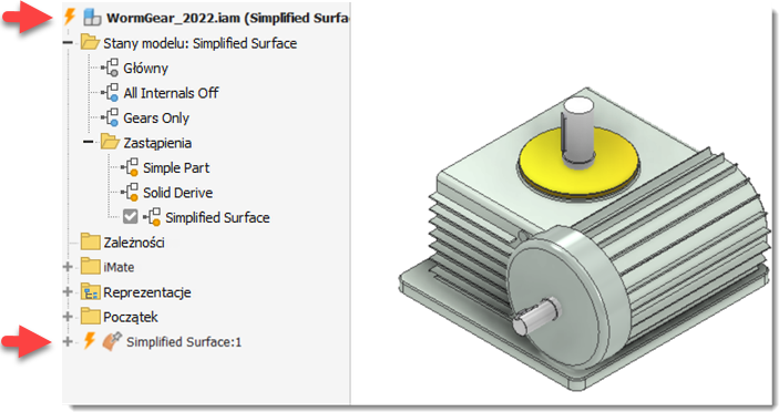 W tym wydaniu obok części zastąpienia nie jest już wyświetlana unikatowa ikona przeglądarki. Jeśli część zastąpienia jest nieaktualna, w zespole źródłowym jest wyświetlana dobrze znana ikona aktualizacji. Można wybrać aktualizację części zastąpienia, jeśli zachodzi taka potrzeba, lub otworzyć część i przerwać połączenie ze źródłem, aby zapobiec aktualizacjom.