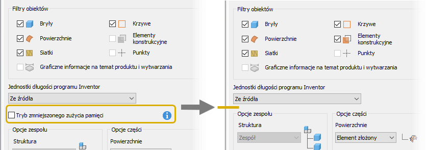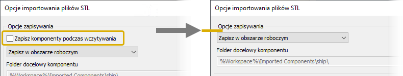 W przypadku importu plików OBJ i STL opcja Zapisz komponenty podczas wczytywania została usunięta.