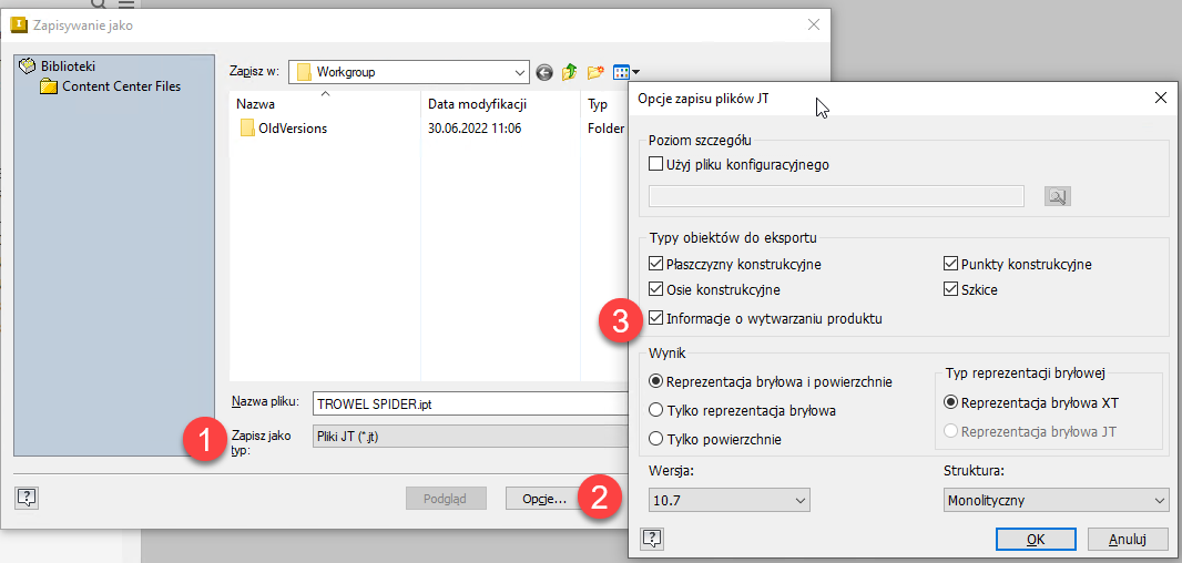 PMI w dokumentach części, mogą zostać dołączone podczas eksportowania zespołów w formatach JT i STEP poprzez wybranie tej opcji.