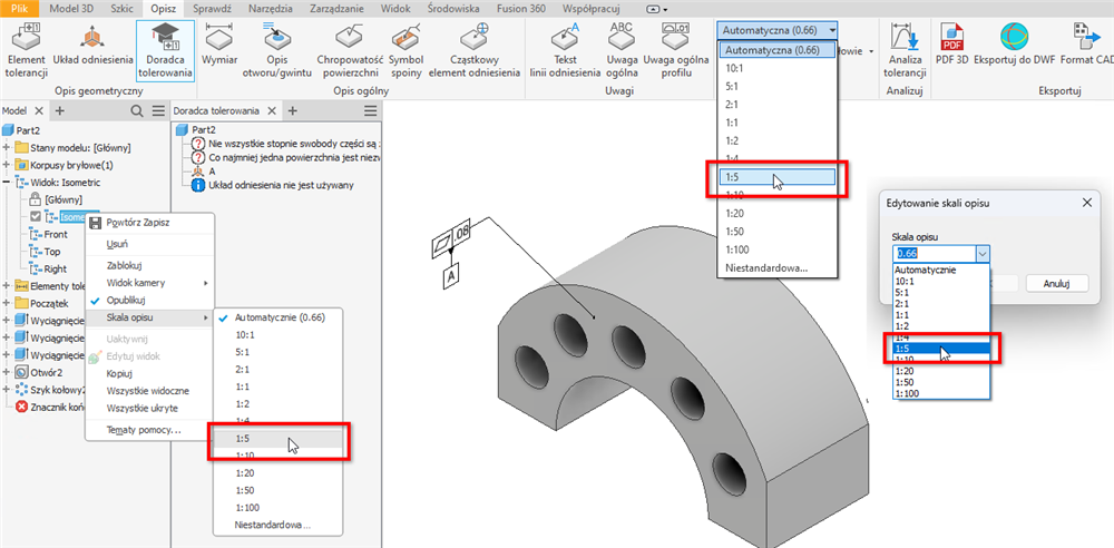 W tej wersji do listy rozwijanej skali opisu dodano skalę 1 : 5 zgodnie z normą DIN EN ISO 55455