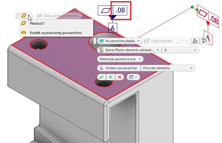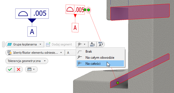 Praca z oznaczeniami elementów tolerancji i Doradcą tolerowania