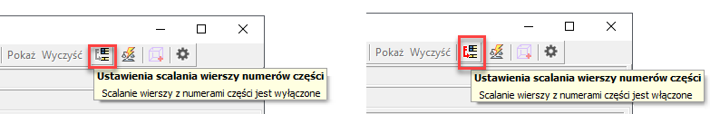Ikona ustawień scalania wierszy z numerami części jest obecnie inna w zależności od tego, czy jest włączona, dzięki czemu można uzyskać bezpośrednią informację wizualną stanu w oknie dialogowym Zestawienie komponentów.