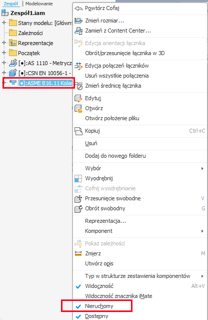 Podczas wstawiania elementów złącznych (na przykład śrub, nakrętek, podkładek) z biblioteki Content Center za pomocą funkcji Upuszczanie automatyczne można obecnie zablokować położenie elementu złącznego za pomocą nowej opcji „Zablokuj obrót”.