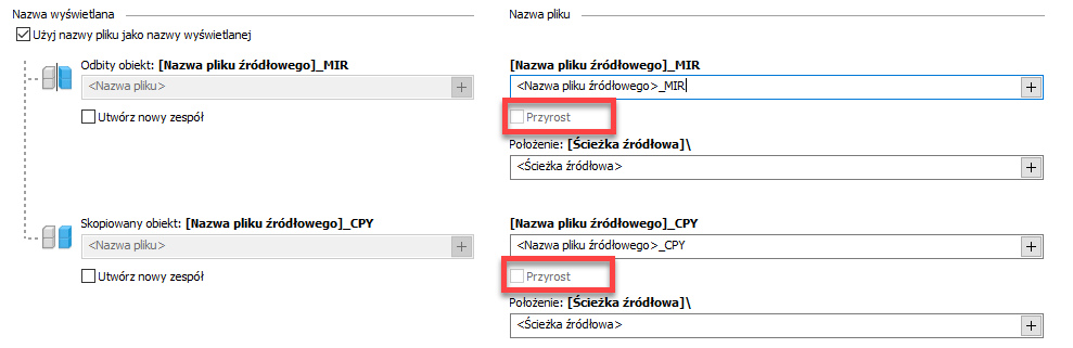 Aby uzyskać więcej informacji, zobacz temat Dostosowywanie struktury folderów w przypadku polecenia Odbij i Kopiuj.