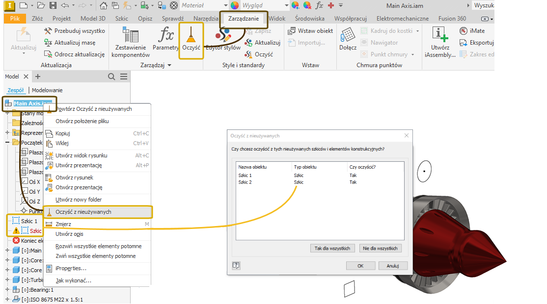 Można selektywnie usuwać nieużywane szkice za pomocą nowego polecenia Oczyść z nieużywanych.