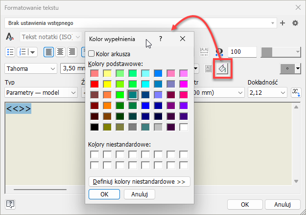 Nowa opcja „Wypełnienie tła” jest dodawana do okna dialogowego „Formatuj tekst” dla wymiarów rysunkowych, co zwiększa czytelność rysunków.