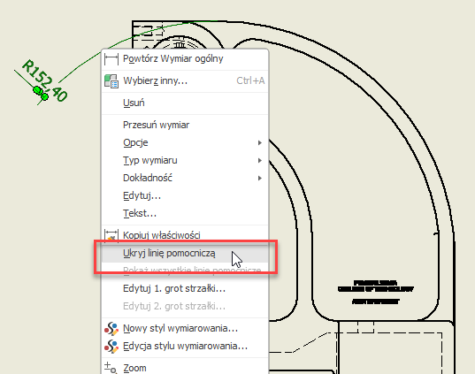 Dodano nową opcję wymiarów średnicy i promienia, która umożliwia ukrycie linii przedłużenia. Aby użyć tej funkcji, wybierz linię przedłużenia, kliknij prawym przyciskiem myszy i wybierz opcję „Ukryj linię przedłużenia”.