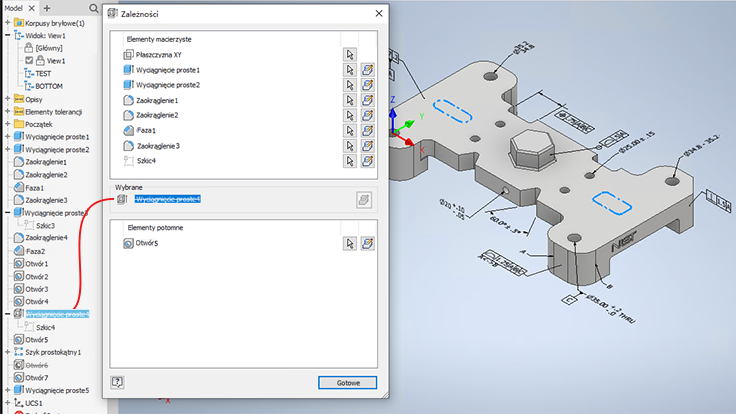 Polecenie Zależności działa obecnie w przypadku wyłączonych elementów. Kliknij prawym przyciskiem myszy wyłączony element i wybierz opcję Zależności.