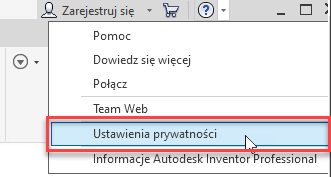 Nazwa elementu programu Desktop Analysis z menu rozwijanego Pomoc została zmieniona na Ustawienia prywatności.