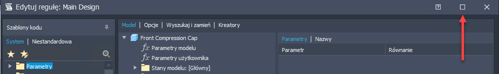 Teraz można zmaksymalizować okno Edytora reguł iLogic, aby łatwiej było edytować reguły.