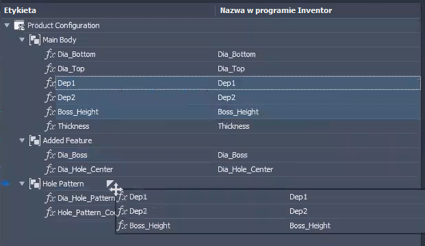 Obecnie można wybrać wiele elementów w edytorze formularzy iLogic i przeciągnąć je w inne miejsce.