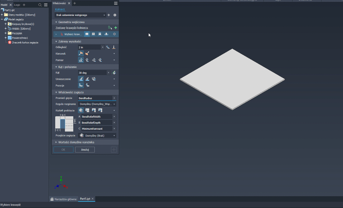 Następujące polecenia konstrukcji blachowych zostały zmodernizowane, uwzględniając interfejs panelu właściwości i procesy robocze. Szybko i łatwo twórz elementy kołnierza, powierzchni i wycięcia konstrukcji blachowych. Korzystaj ze zaktualizowanego interfejsu i procesów roboczych, aby usprawnić zadania związane z konstrukcjami blachowymi.