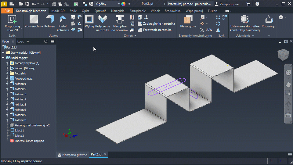 Dowiedz się więcej na temat ulepszeń wprowadzonych w procesach roboczych konstrukcji blachowych w tej wersji programu Inventor.