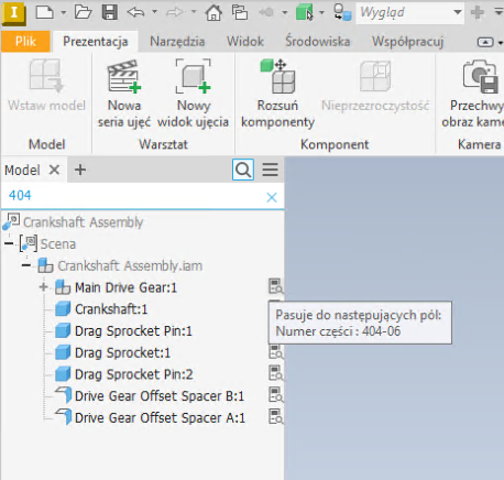 W tym wydaniu programu Inventor dodano możliwość wyszukiwania zależnych właściwości iProperties dokumentu w pliku typu IPN.