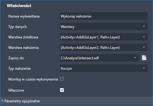 Na przykład proces roboczy Nakładanie wymaga określenia składnicy danych, z którą ma zostać nawiązane połączenie.