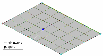 W programie Robot w miejscu definicji zwolnienia liniowego utworzony zostanie przegub. Aby uniknąć niestabilności związanych z tym efektem, należy utworzyć specjalną podporę, w której zablokowany jest jedynie obrót wokół osi prostopadłej do rozpatrywanej płyty. Ta podpora może zostać umieszczona w dowolnym miejscu płyty, pod warunkiem, że nie wpłynie na zmianę rozkładu sił.
