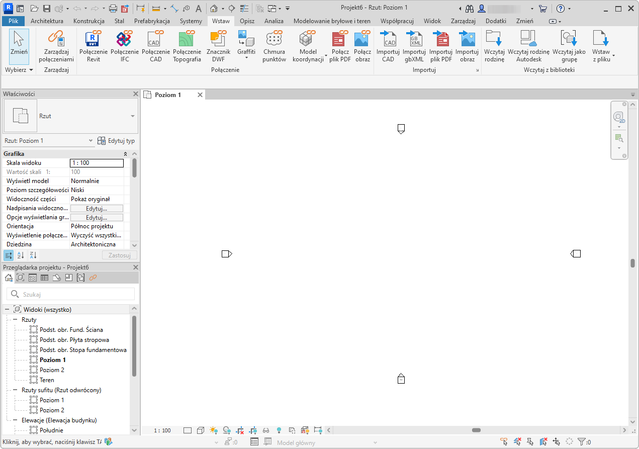 Na dole menu znajduje się lista otwartych widoków. Aktualnie wybrany widok w obszarze rysunku jest zaznaczony. |
