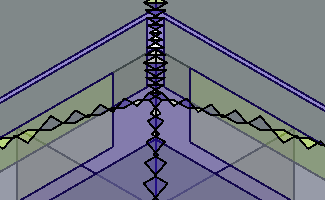 Na poniższym rysunku przedstawiono inny przypadek, gdzie powierzchnie analityczne reprezentujące części dachu pokazują nieregularne linie.