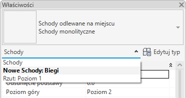 - Na liście Wybór typu wybierz typ schodów, który zostanie utworzony. Typ można zmienić później, w razie potrzeby.
