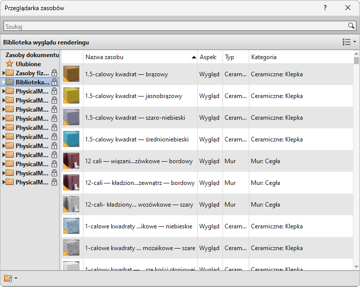 ) dla materiałów. Dzięki temu na widokach i renderowanych obrazach będą używane najnowsze i najlepsze reprezentacje materiałów.
