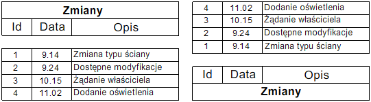 W zestawieniach zmian informacje można wyświetlać na różne sposoby: Niektóre biura projektowe stosują kolejność zstępującą, gdzie nagłówki kolumn i wiersze zmian zaczynają się u góry zestawienia. Inne biura projektowe preferują kolejność wstępującą, gdzie nagłówki kolumn i wiersze zmian zaczynają się u dołu zestawienia. W obu przypadkach zestawienie zmian sortuje wiersze, korzystając z ustawień określonych na zakładce Sortowanie/Grupowanie w oknie dialogowym Właściwości zmian.