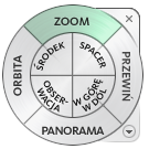 Aby powiększyć lub pomniejszyć, obracając kółko myszy gdy wyświetlane jest Koło sterujące