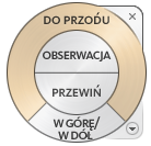 Narzędzie SteeringWheels Do przodu służy do zwiększania i zmniejszania odległości pomiędzy bieżącym punktem widoku i punktem obrotu.