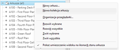 Aby utworzyć kolekcję arkuszy, w Przeglądarce projektu