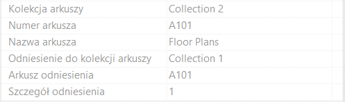 Parametry Kolekcja arkuszy i Odniesienia do kolekcji arkuszy są dostępne w odpowiednich kategoriach rodzin (tytuły widoków, odniesienia do widoków, symbole odwołań, znaczniki wysokości, znaczniki przekroju, tabelki rysunkowe), dzięki czemu można ich używać w etykietach.