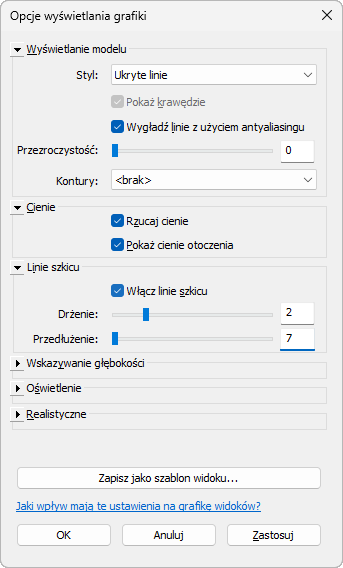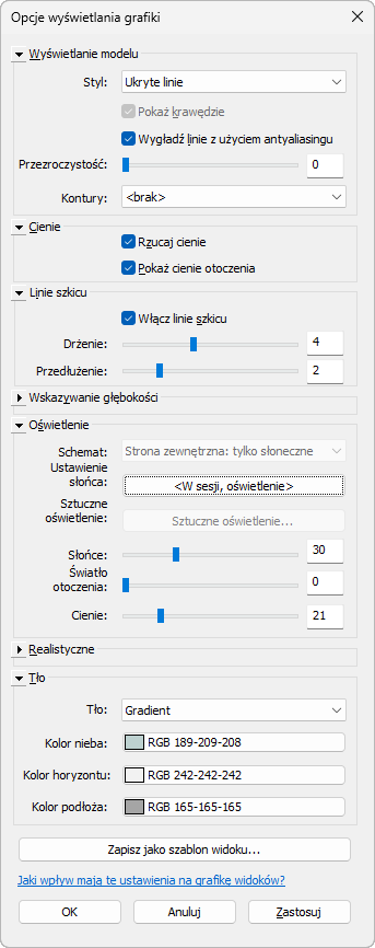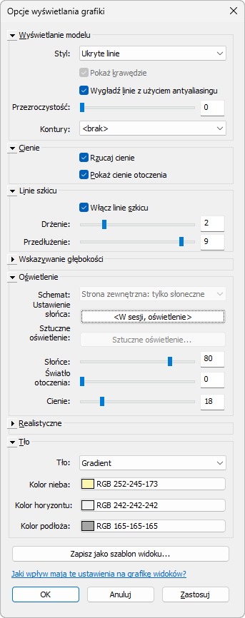 W widoku tym użyto następujących ustawień w oknie dialogowym Opcje wyświetlania graficznego: