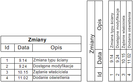 Poziome zestawienie zmian (po lewej) i obrócone zestawienie zmian (po prawej)