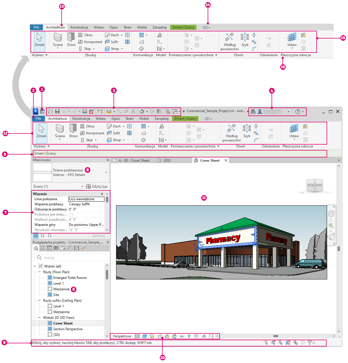| 15 | Narzędzia na bieżącej karcie wstążki |