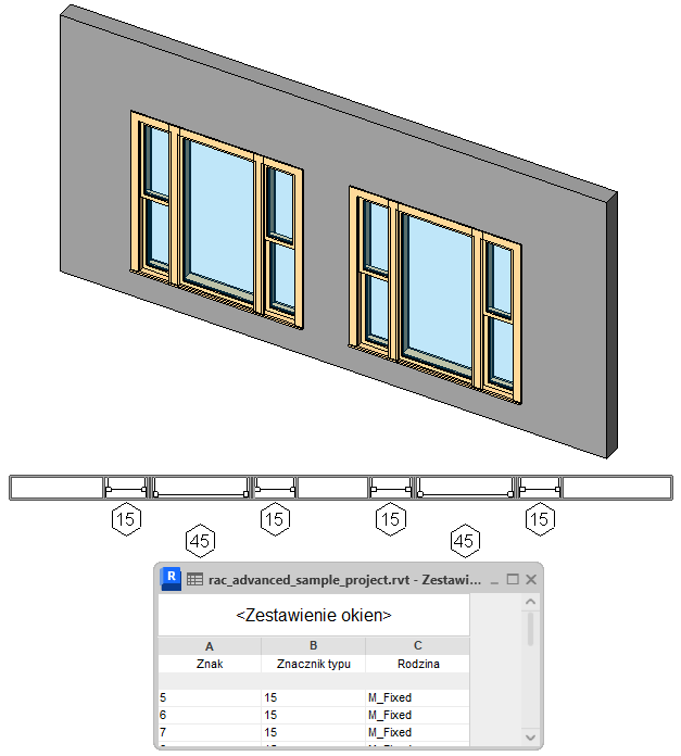 Po zagnieżdżeniu i udostępnieniu rodzin rodziny współdzielone można zestawić jako pojedyncze wystąpienia. Rodzina złożona z rodzin współdzielonych i zagnieżdżonych umożliwia oddzielne zestawianie każdego z wystąpień rodziny zagnieżdżonej. W ramach zestawienia można zmienić numerację każdego z wystąpień rodziny zagnieżdżonej.