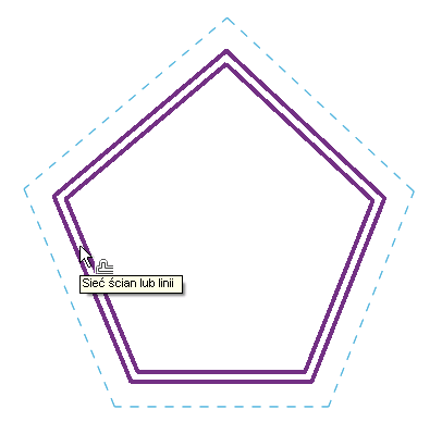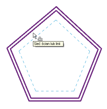 Jeśli odległość odsunięcia określono za pomocą opcji Numerycznie, na tej odległości zostanie wyświetlona linia podglądu od wyróżnionych elementów po stronie, po której znajduje się wskaźnik myszy, tak jak pokazano na rysunku.