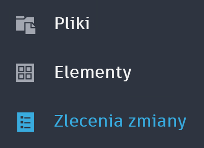 Panel poruszania się po obszarze roboczym po lewej stronie interfejsu klienta Thin Client zawiera trzy ikony. Każda ikona reprezentuje jeden z typów obiektów programu Vault, z którymi można pracować w kliencie Thin Client: pliki, elementy i zlecenia zmiany.