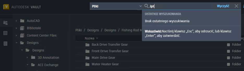 Funkcja wyszukiwania umożliwia szybkie i łatwe znajdywanie plików i folderów.