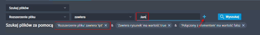 , aby usunąć poszczególne parametry wyszukiwania, lub przycisk Wyczyść, aby usunąć wszystkie parametry wyszukiwania.