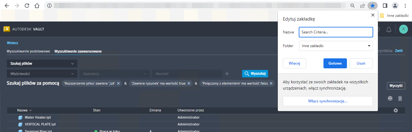 Można dodać wyszukiwanie zaawansowane z wymaganymi kryteriami w zakładce przeglądarki internetowej i szybko wykorzystać je ponownie. Kliknij zakładkę, aby ponownie znaleźć wybór. Może to być szczególnie przydatne w przypadku złożonych zapytań, które będą używane wielokrotnie.