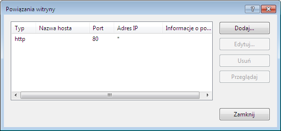 Kliknij prawym przyciskiem myszy domyślną witrynę i wybierz opcję Edytuj powiązania.