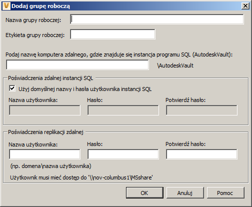 Wprowadź odpowiednie informacje o zdalnej grupie roboczej.